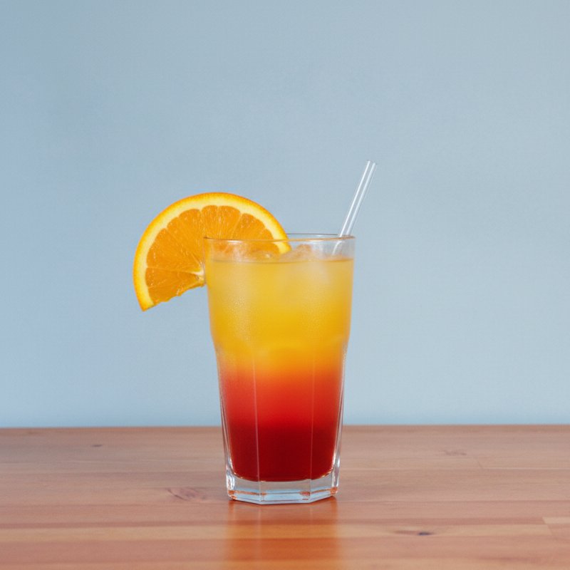 Perfecta combinación de tequila, ron y jugo (zumo) de naranja.
